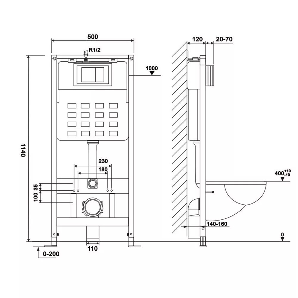Rezervorul de toaletă de perete ROYA măsoară 500 x 120 x 1140 mm, ceea ce este optim pentru majoritatea amenajărilor de baie. Designul său compact și cu economie de spațiu îi permite să se integreze perfect în baia dvs.