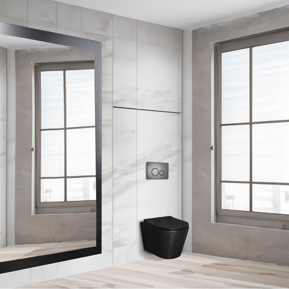 Setul include toaleta Milos BLM , care este echipată cu un scaun cu închidere silențioasă . Asta înseamnă că capacul de toaletă se închide încet și ușor, fără a se trânti brusc. Această caracteristică oferă confort și liniște, precum și o durată de viață mai lungă a scaunului. Toaleta Milos este fabricată din ceramică neagră, ușor de curățat și igienică.