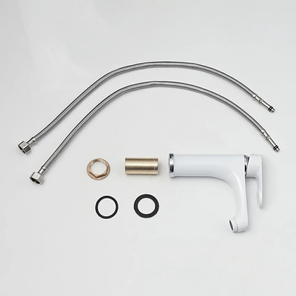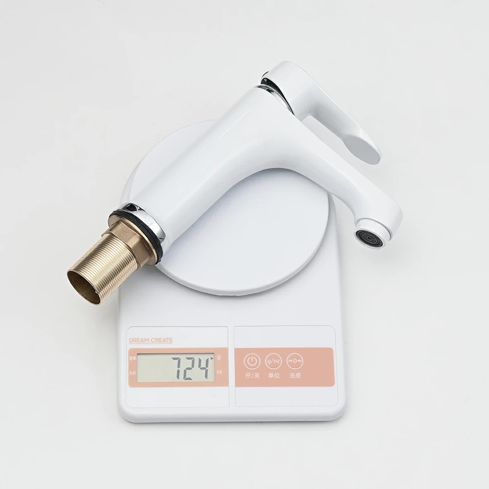 Robinetul era făcut din alamă. Alamă Aliajele neferoase binare cupru-zinc , cunoscute în mod obișnuit sub denumirea de aliaje cupru-zinc, joacă un rol extrem de important în practica tehnică. Au proprietăți mecanice, tehnologice și de coroziune bune datorită gamei largi de compoziții. Își păstrează strălucirea pentru o lungă perioadă de timp. Suprafața robinetului este cromată albă. Mânerul său este fabricat din zinc. Robinetul are un cartuș ceramic, care poate evita scurgerile de apă și economisește apă. Deoarece este fabricat din ceramică, are o durată de viață mai lungă.