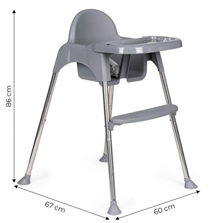 Scaunul este reglabil pe înălțime. Picioarele și suportul pentru picioare pot fi ușor deșurubate, făcând din scaunul înalt un scaun mai jos. Când cel mic devine independent și nu mai trebuie să îl supravegheați îndeaproape, un scaun mai jos este perfect pentru el.
