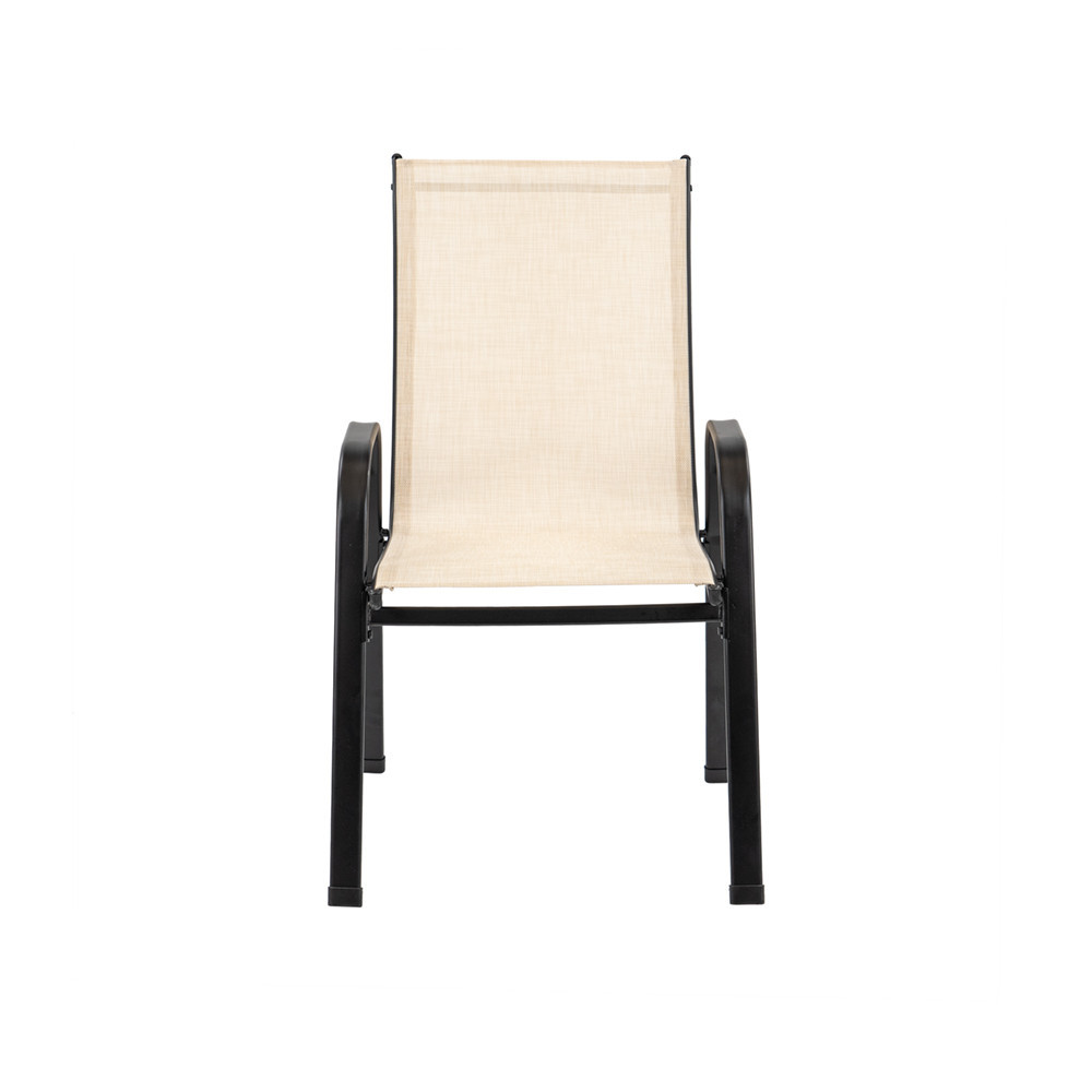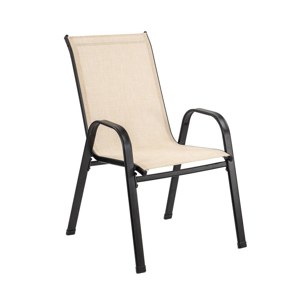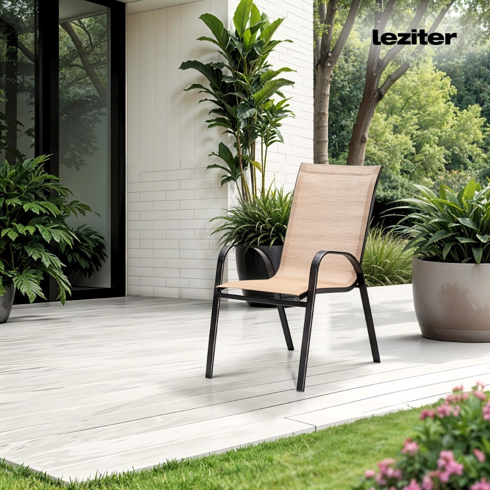 Scaunul de grădină Como aduce eleganța bejului și confortul modern în aer liber. Fabricat dintr-o combinație de oțel și material textil, scaunul cu înălțimea de 92 cm și lățimea de 54,5x63 cm oferă o ședere confortabilă, având dimensiunea ideală pentru a economisi spațiu în grădină, terasă sau balcon. Șezutul și spătarul acoperite cu material textil oferă confortul și respirabilitatea necesare în zilele fierbinți de vară, în timp ce cadrul din oțel garantează stabilitate și durabilitate în ciuda tuturor provocărilor vremii.