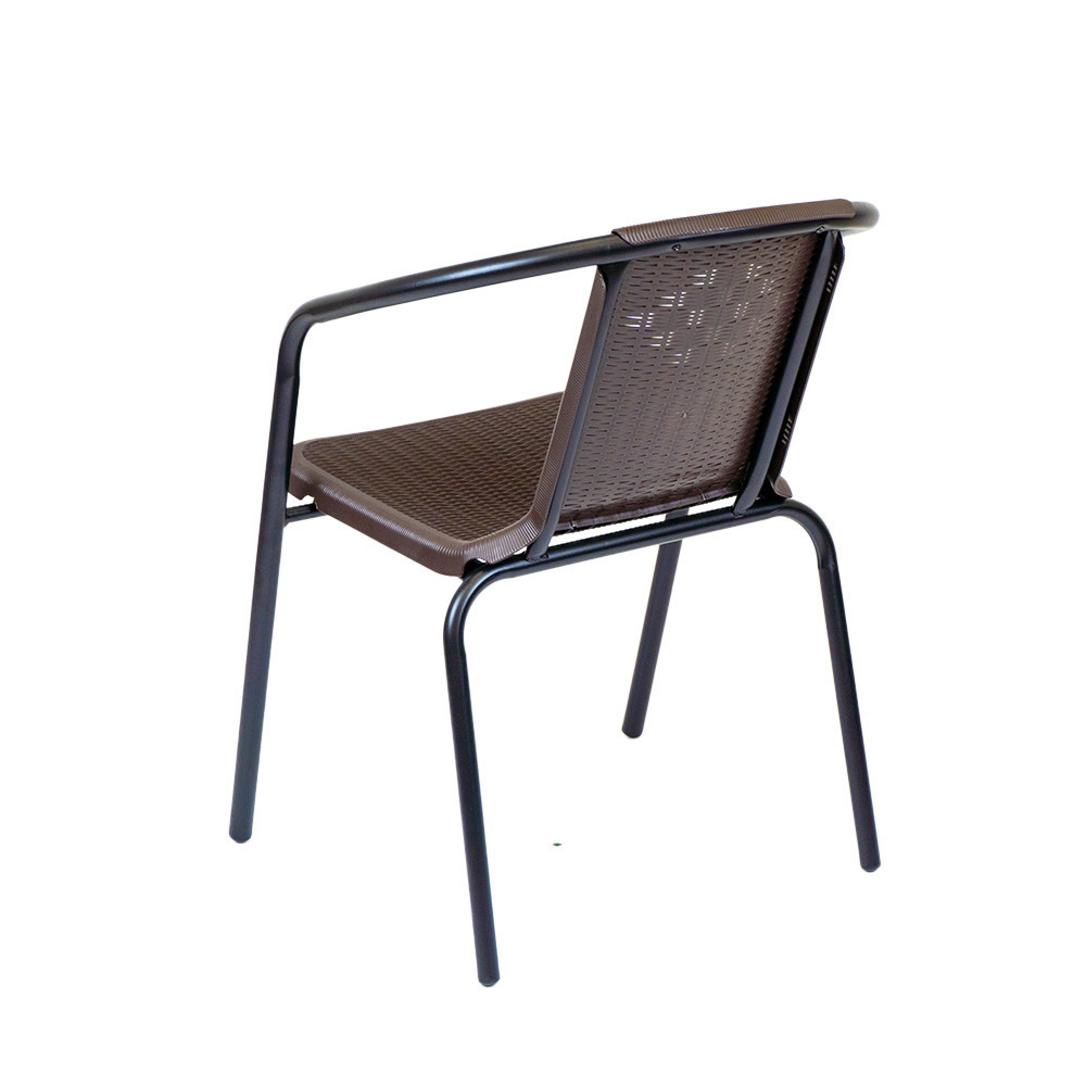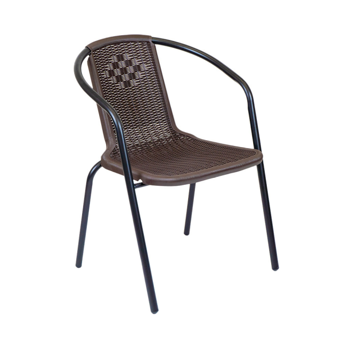 Acesta este un scaun de grădină modern, simplu și minunat, cu șezut din răchită cu efect de ratan. De asemenea, este excelent pentru luat masa și relaxare în aer liber. Este perfect atât pentru uz rezidențial, cât și comercial, cum ar fi restaurante, bistrouri și locuri de divertisment. Este foarte practic deoarece poate fi așezat unul peste altul, adică stivuit, așa că este ușor de depozitat și nu ocupă mult spațiu. Datorită cadrului său din oțel, are un design stabil și solid, o soluție durabilă și ușor de curățat datorită suprafeței sale din plastic.
