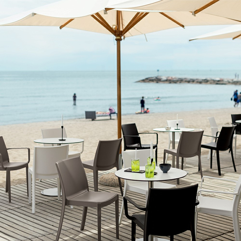 Scaunul din plastic Pirlo se integrează perfect în orice mediu datorită dimensiunilor sale de 55x 47x 82 cm. Forma scaunului îi permite să se potrivească chiar și pe un balcon sau o terasă îngustă, iar atunci când este completat cu masa asortată, poate fi transformat într-o zonă de luat masa perfectă.