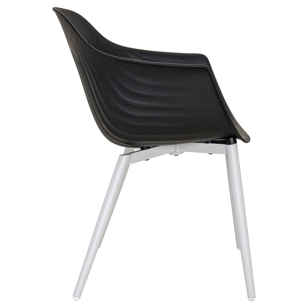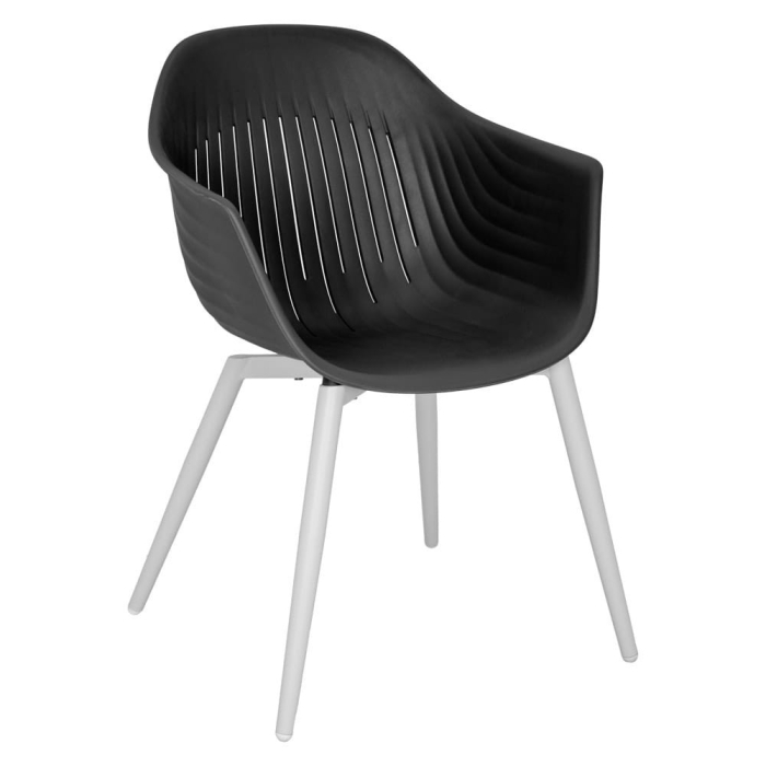 Acest scaun de grădină unic nu numai că impresionează prin eleganța sa, dar este și certificat Global Recycled Standard (GRS), ceea ce certifică faptul că scaunul este fabricatdin plastic reciclat, ceea ce îl face nu numai confortabil, ci și ecologic.