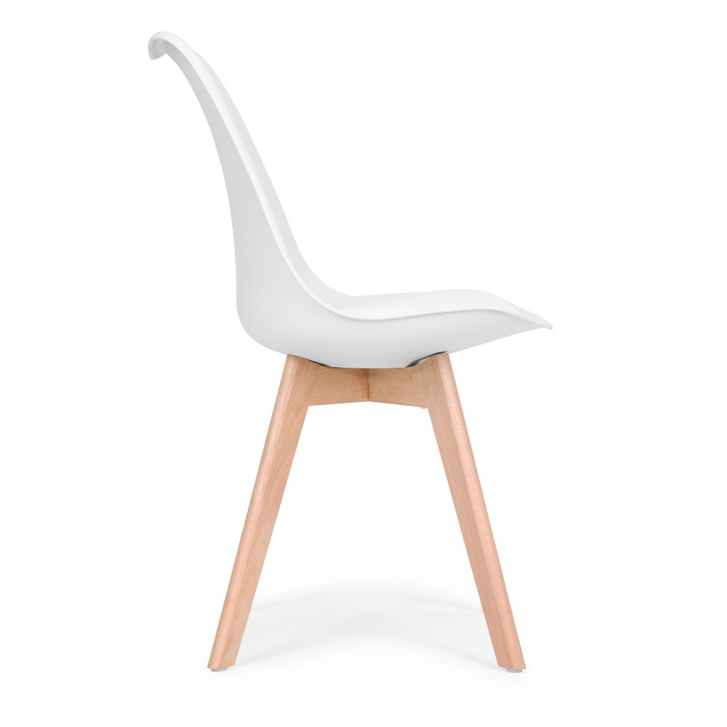Combinația picioarelor din fag cu o pernă elegantă din piele ecologică oferă scaunului un aspect modern, dar confortabil.