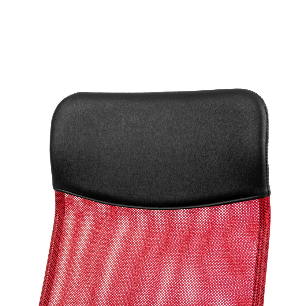 Scaunul de birou are o bază lată care asigură stabilitatea în timpul utilizării. Scaunul rotativ roșu este echipat cu roți din nailon care protejează podeaua de zgârieturi. Scaunul de birou are funcție de ÎNCLINARE , adică blochează poziția verticală, și un mecanism de înclinare.
