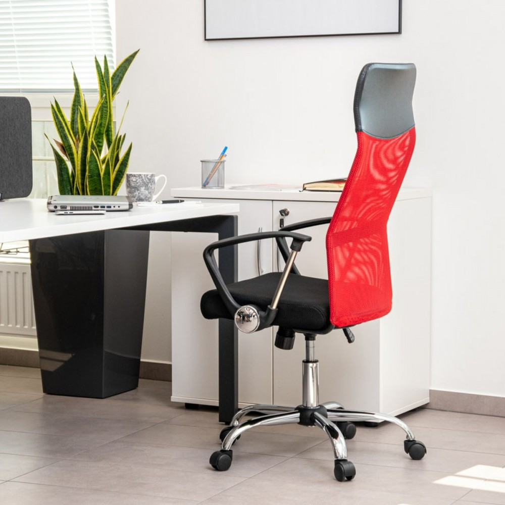 Scaun de birou ergonomic cu ventilație recomandat atât pentru birou, cât și pentru acasă. Scaunul de birou rotativ este o alegere excelentă atât ca fotoliu independent pentru adulți, cât și ca fotoliu pentru tineri. Scaunul rotativ elegant oferă un confort ridicat în lucru, menținând în același timp postura corectă a utilizatorului.