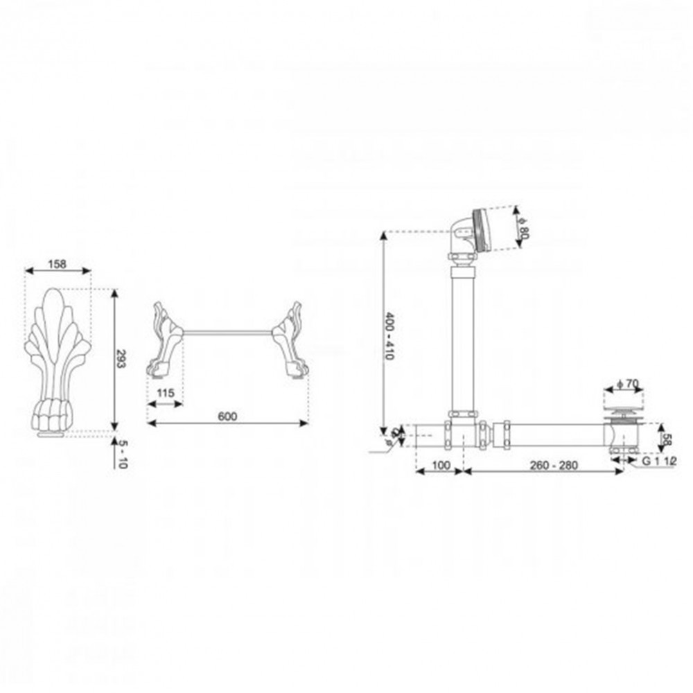 Picioare și scurgere pentru cada de baie independentă Antica