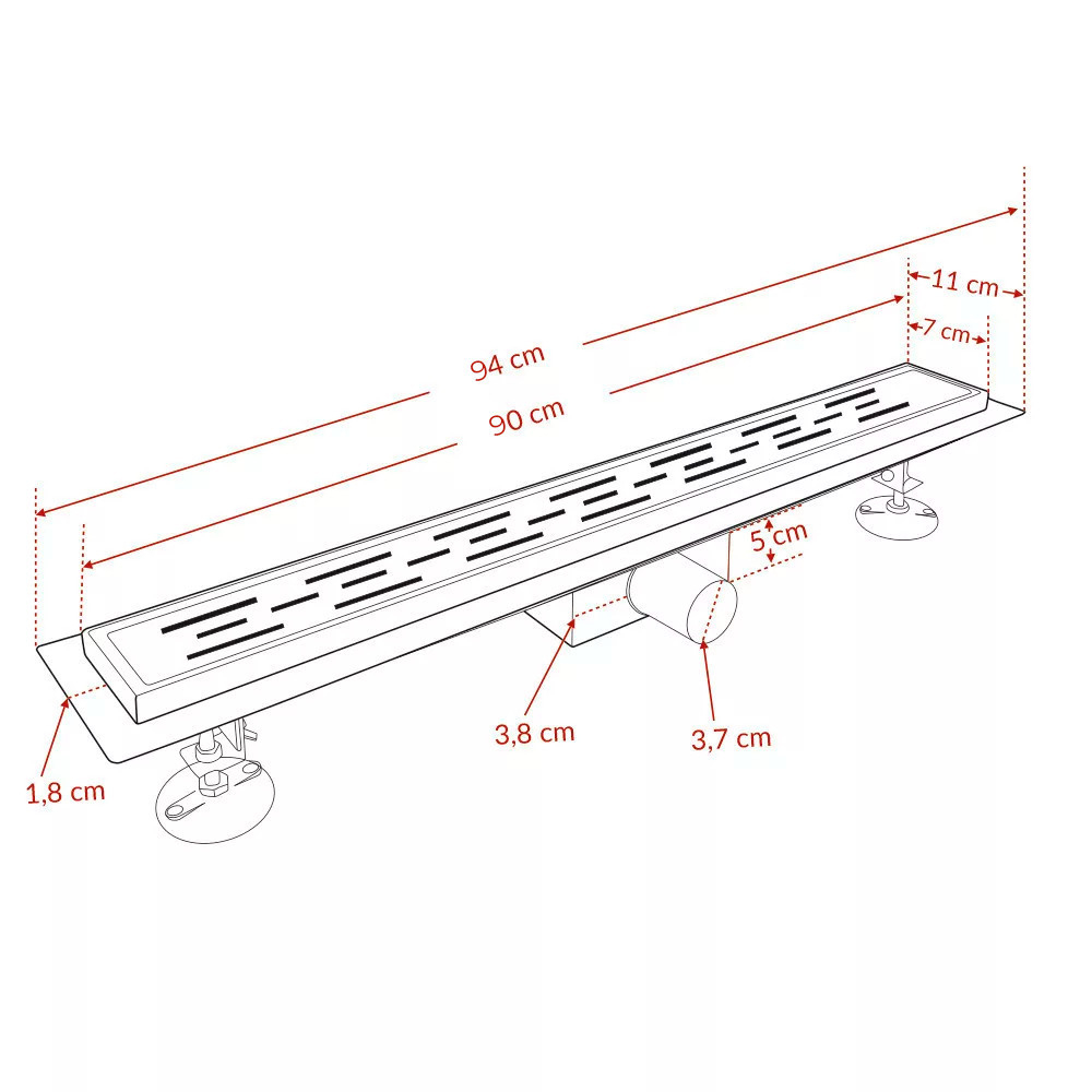 Baza din oțel este prevăzută cu o margine izolatoare. Produsul este echipat cu o grilă lucioasă și lustruită. Profil redus , poate fi instalat direct sub ușa de duș sau lângă perete. Este rezistent la acizi și alcali, ceea ce reprezintă, de asemenea, un avantaj uriaș în ceea ce privește curățarea. , deoarece datorită acestei proprietăți, nu se deteriorează atunci când se utilizează agenți de curățare puternici. Sifonul face parte din pachet.