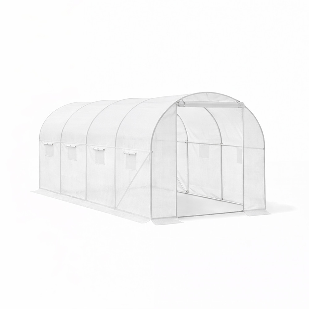 Cortul modern din folie este echipat cu o ușă pliabilă practică, care facilitează accesul. Cele 8 orificii de ventilație laterale ale cortului sunt prevăzute cu plasă pentru a preveni pătrunderea insectelor, asigurând în același timp o circulație adecvată a aerului. Ferestrele ajută la reglarea umidității, crescând astfel randamentul culturilor. Cortul din folie poate fi utilizat în orice condiții meteorologice, fiind o soluție ideală pentru cultivarea plantelor în grădină sau pe proprietate.