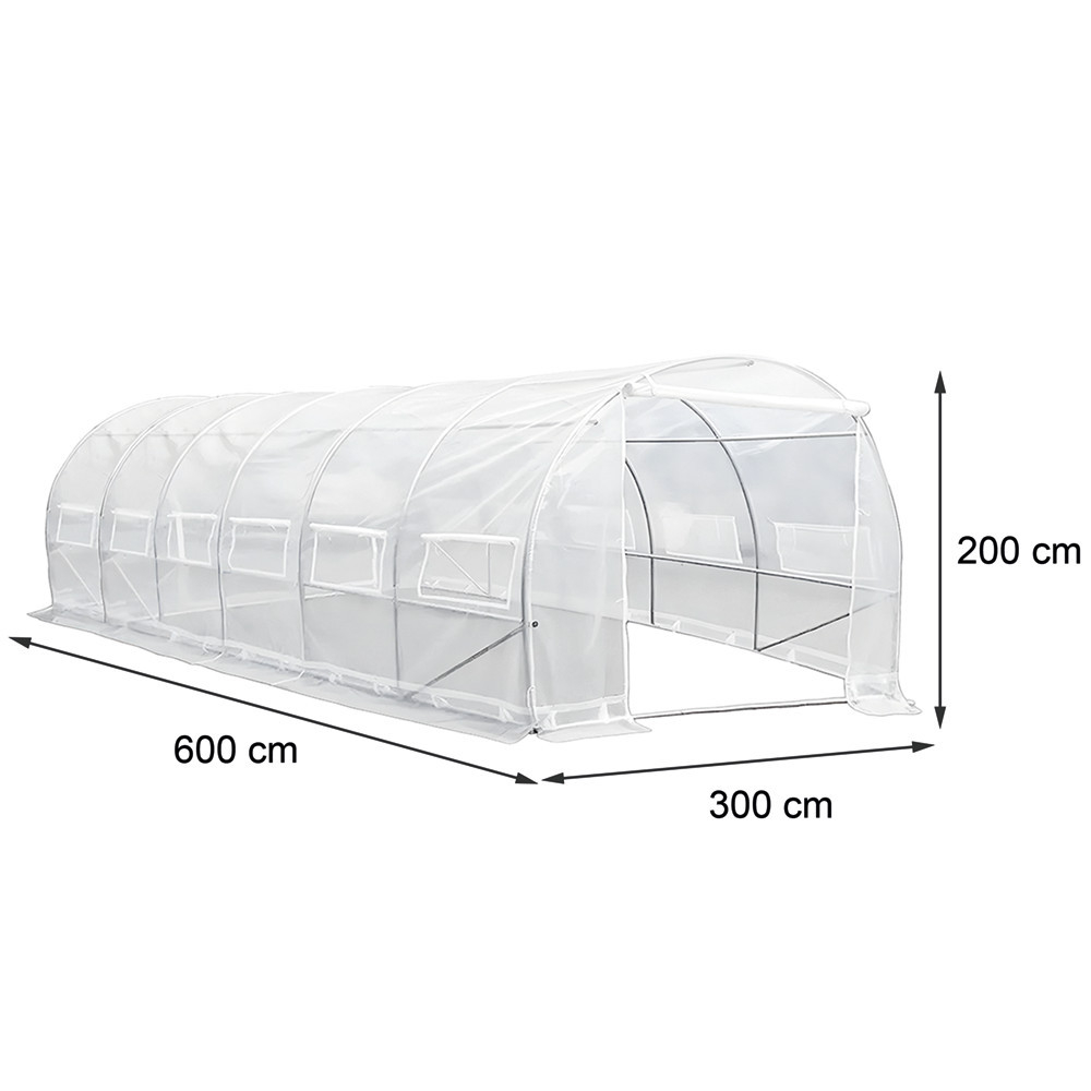 Cortul modern din folie este echipat cu o ușă pliabilă practică, care facilitează accesul. Cele 12 orificii de ventilație laterale ale cortului sunt prevăzute cu plasă pentru a împiedica pătrunderea insectelor, asigurând în același timp o circulație adecvată a aerului. Ferestrele ajută la reglarea umidității, crescând astfel randamentul culturilor. Cortul din folie poate fi utilizat în orice condiții meteorologice, fiind o soluție ideală pentru cultivarea plantelor în grădină sau pe proprietate.