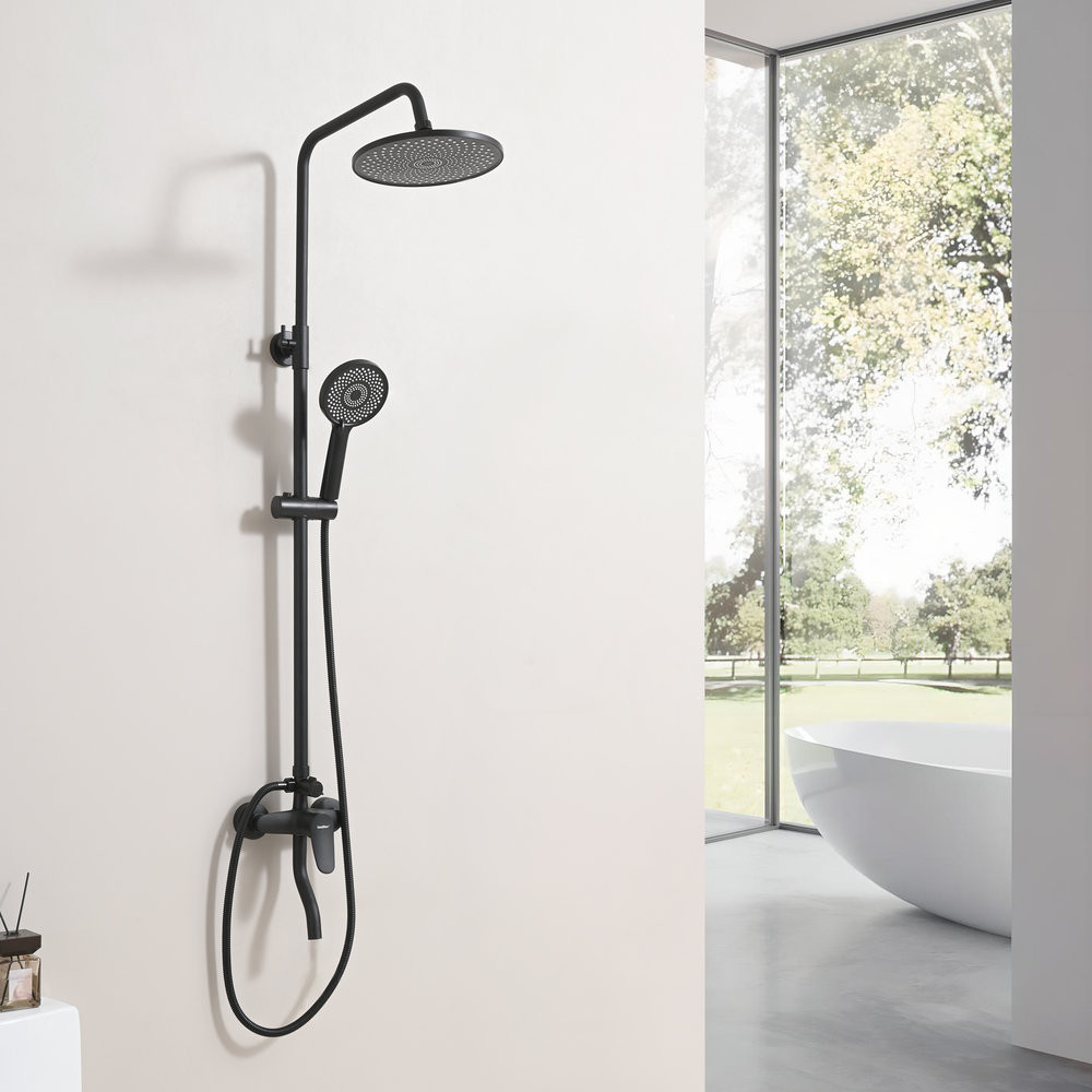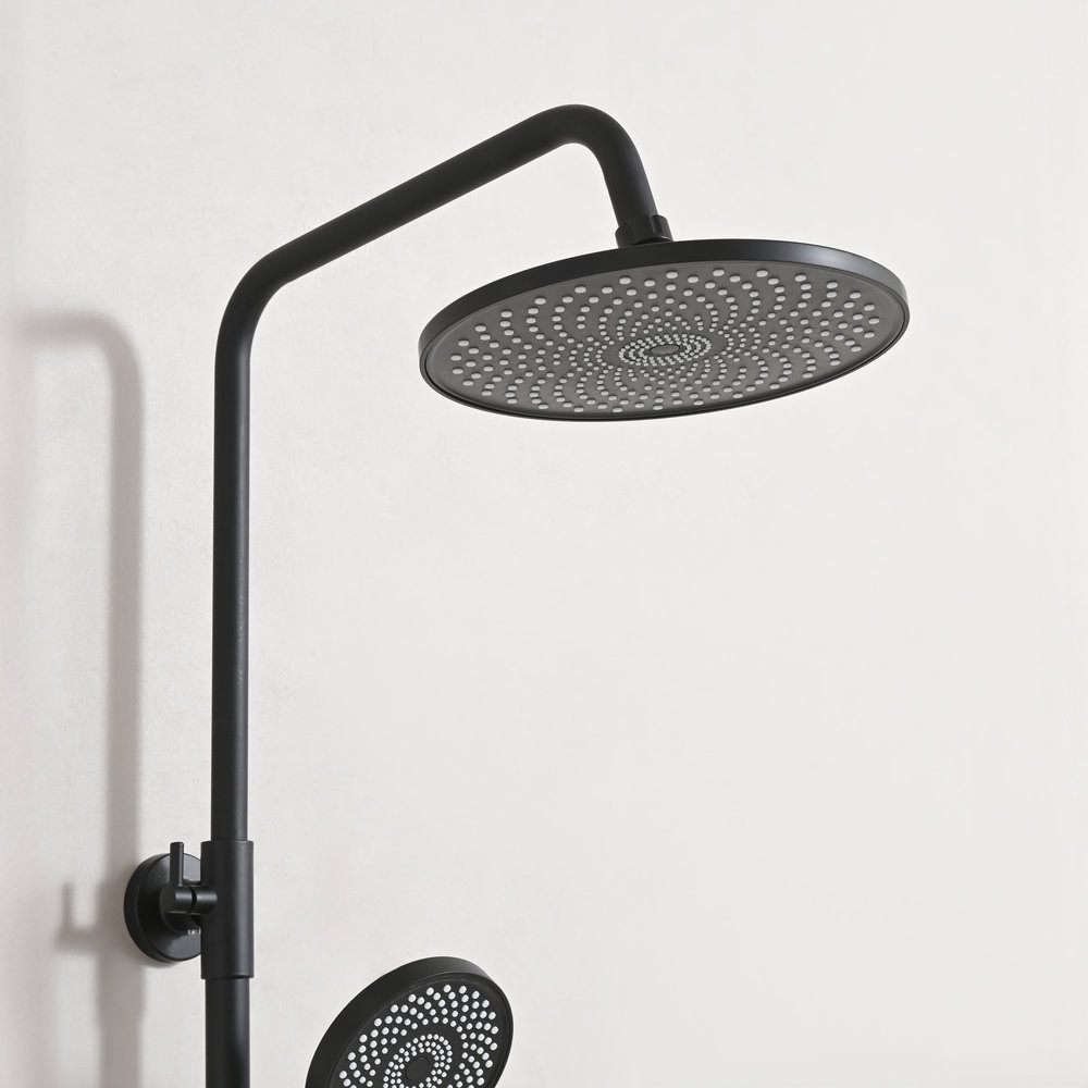 Sistemul de duș negru arată deosebit de bine cu faianța de culoare deschisă, în băile moderne din beton sau cu efect de marmură. Acesta emană forță, claritate și modernitate, creând în același timp un spațiu îngrijit din punct de vedere vizual și cu caracter.