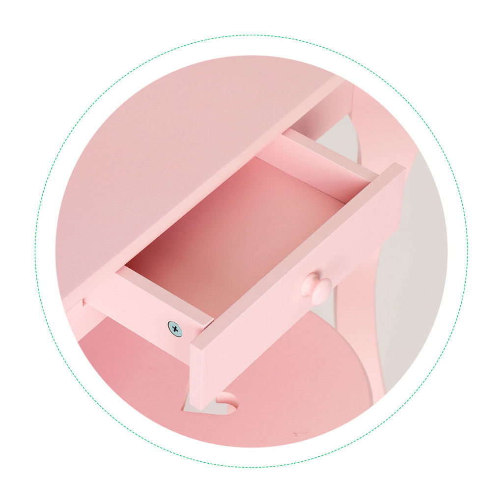 Măsuța de toaletă vine cu un scăunel adorabil care se potrivește perfect cu designul mesei. Taburetul este confortabil și stabil, oferindu-le copiilor un loc confortabil de joacă.