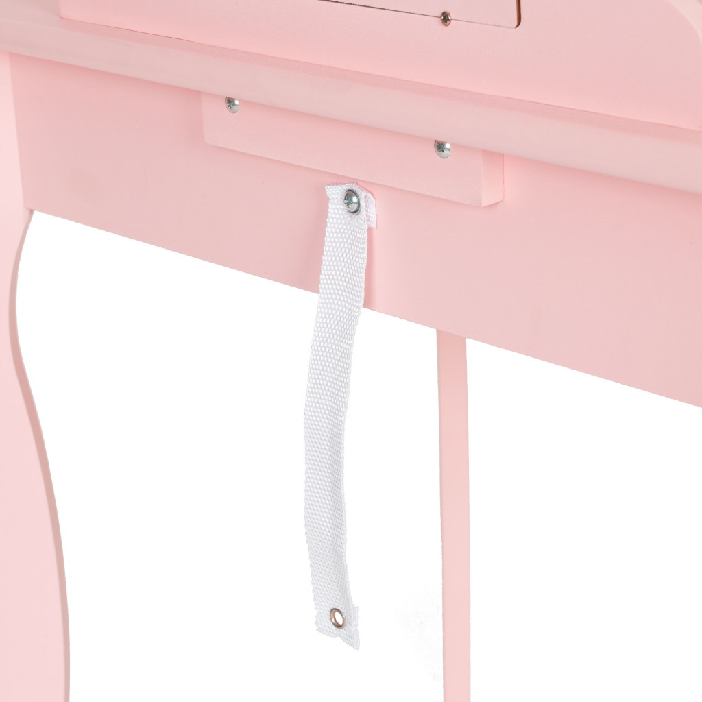 Măsuța de toaletă are, de asemenea, un sertar la îndemână unde copiii își pot depozita comorile, bijuteriile sau echipamentele de joacă. Sertarul este ușor de deschis și închis, astfel încât copiii își pot organiza mica lume în mod independent.