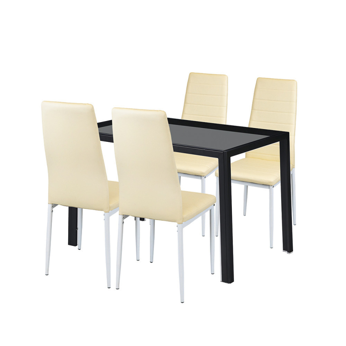 Alege setul de dining Nicole 4+1 dacă ești în căutarea unei piese de mobilier cu caracter, stil bej, durabilitate și confort!