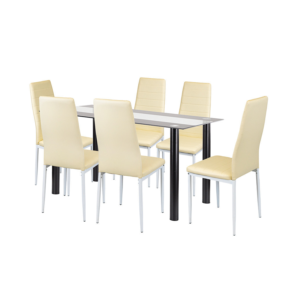 Blatul mesei din sticlă călită are o grosime de 8 mm, fiind rezistent la zgârieturi și căldură, în timp ce poate fi curățat printr-o singură mișcare ușoară. Dimensiunile sale - 140 x 80 x 75 cm - permit ca 4-6 persoane să stea confortabil în jurul său.