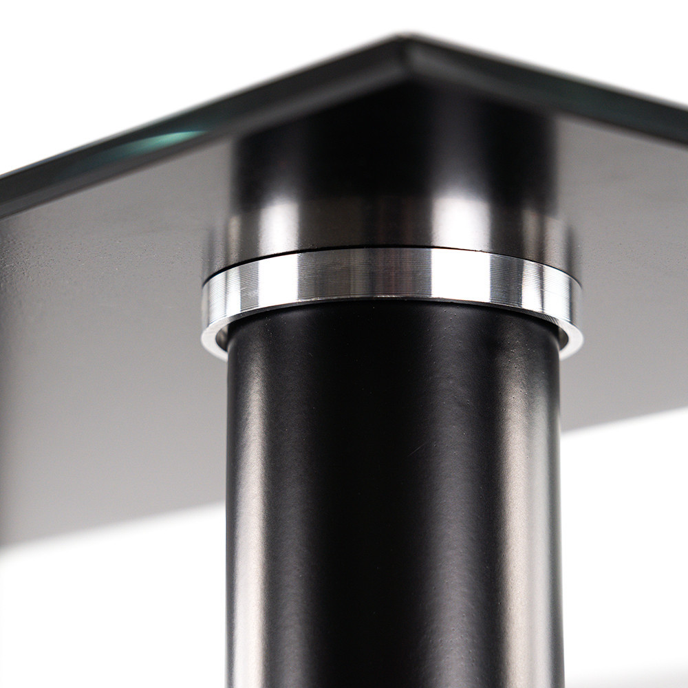 Blatul mesei din sticlă călită are o grosime de 8 mm, fiind rezistent la zgârieturi și căldură, în timp ce poate fi curățat printr-o singură mișcare ușoară. Dimensiunile sale - 140 x 80 x 75 cm - permit ca 4-6 persoane să stea confortabil în jurul său.