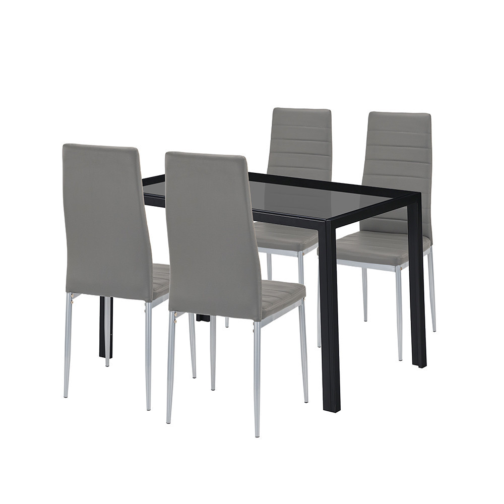 Set de sufragerie Rowan 4+1 - Stil gri modern cu masă din sticlă călită și scaune confortabile