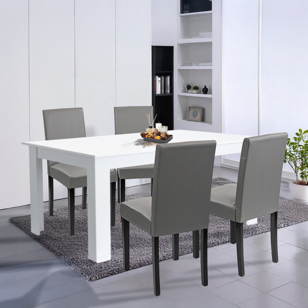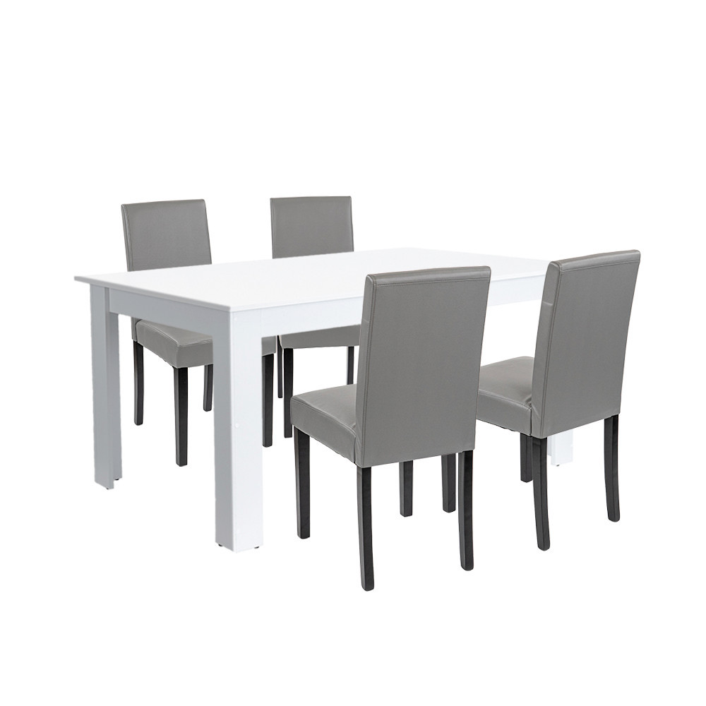 Setul de masă cu 4 locuri Leziter Leon are tot ce vă așteptați de la o piesă de mobilier modernă și fiabilă. Masa este fabricată din lemn de mobilier alb, rezistent, și măsoară 160x90x76 cm, astfel încât poate funcționa ca o piesă de mobilier mai proeminentă în sufragerii de dimensiuni medii, în timp ce poate servi ca o masă centrală elegantă și confortabilă în spații mai mari. Oferă spațiu ideal pentru 6-8 persoane, fiind o alegere excelentă pentru cine în familie sau întâlniri cu prietenii. Designul montat pe panou permite o asamblare rapidă și ușoară, în timp ce întăriturile metalice ale colțurilor garantează stabilitatea și longevitatea.