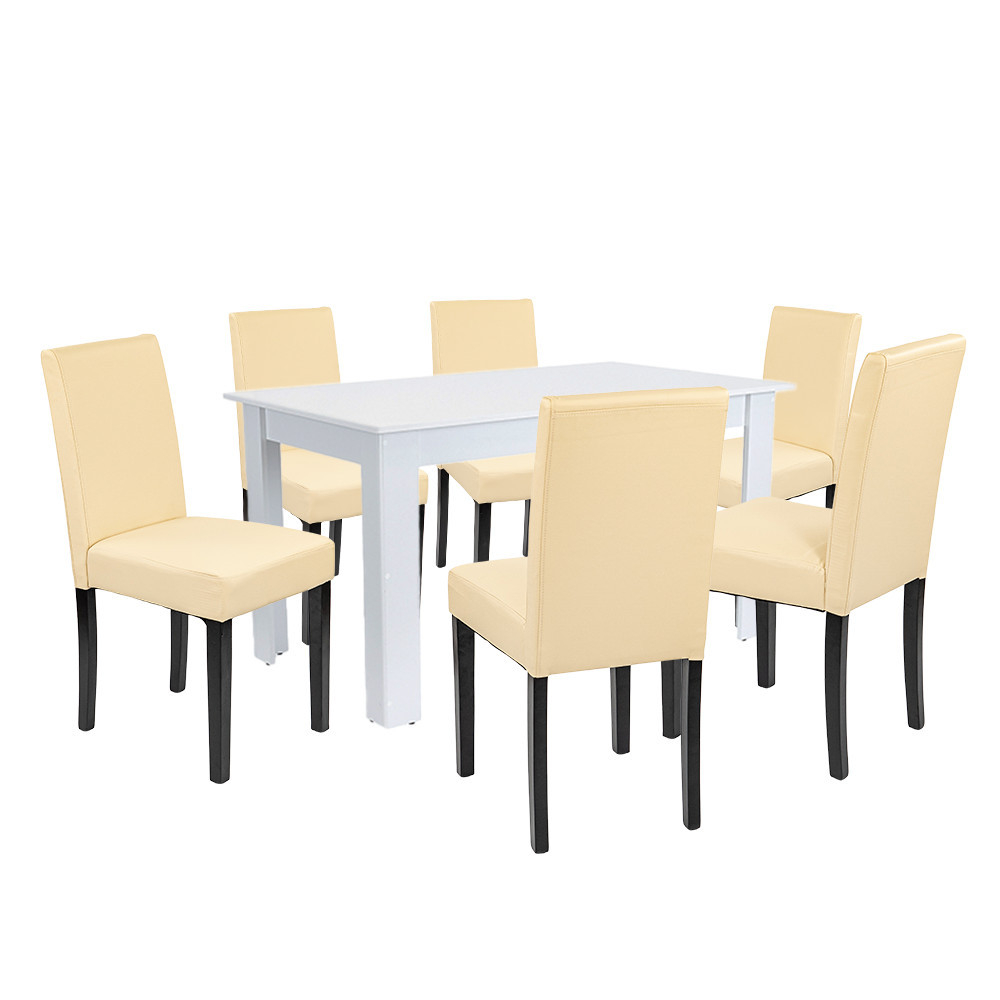 Setul de masă Leziter Leon cu 6 locuri are tot ce vă așteptați de la o piesă de mobilier modernă și fiabilă. Masa este fabricată din lemn masiv alb, rezistent, și măsoară 140x80x76 cm, așa că se potrivește perfect în camere de dimensiuni medii, oferind în același timp un spațiu confortabil pentru mesele comune. Designul montat pe panou permite o asamblare rapidă și ușoară, în timp ce întăriturile metalice ale colțurilor garantează stabilitatea și longevitatea.