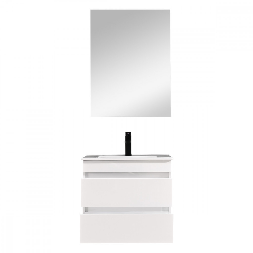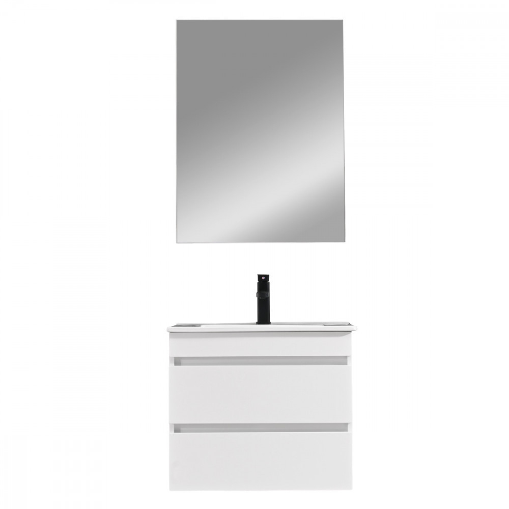 Mobilierul inferior include și o oglindă cub de 60 cm. Produsul are o parte frontală și o carcasă vopsite lucios, precum și margini asortate în culori . Mobilierul de baie este disponibil în versiune suspendată .