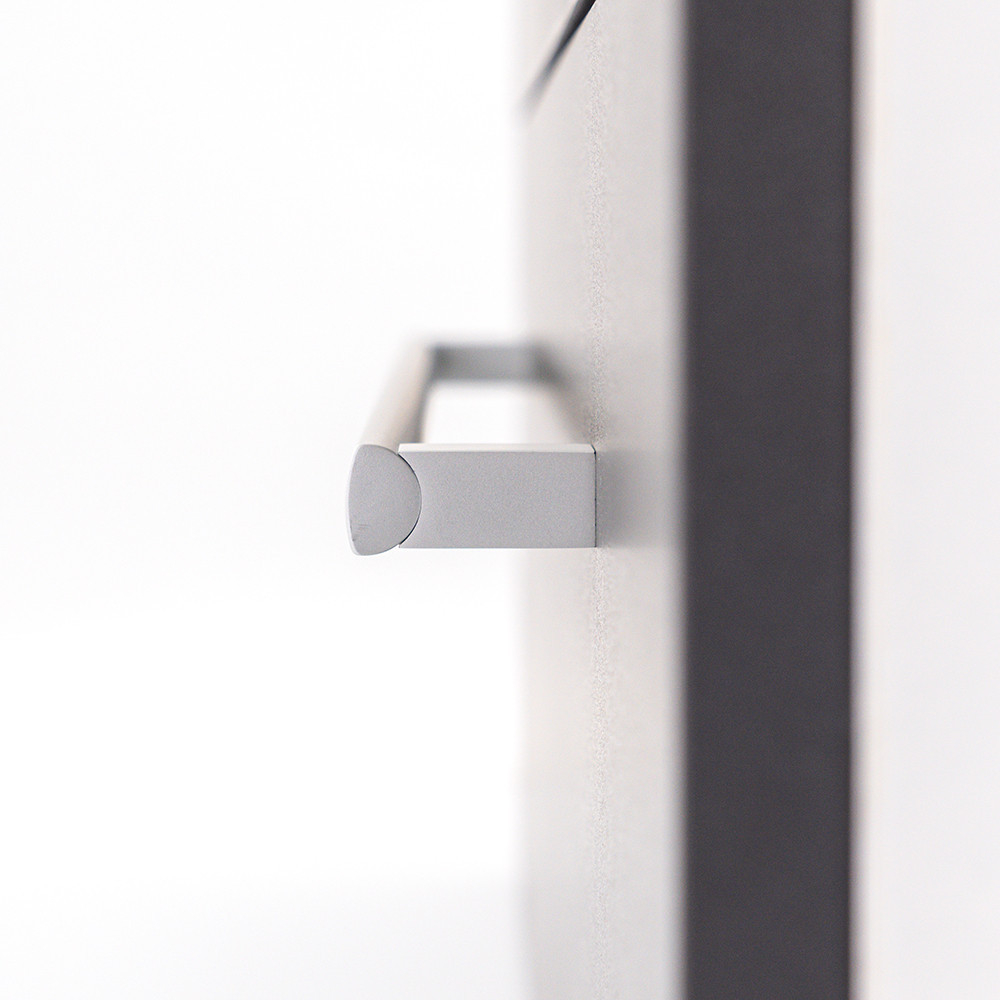 Combinația dintre corpul alb și fațada antracit conferă mobilei un aspect elegant și atemporal.