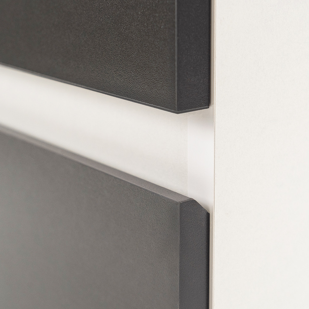 Combinația dintre corpul alb și fațada antracit conferă mobilei un aspect elegant și atemporal.
