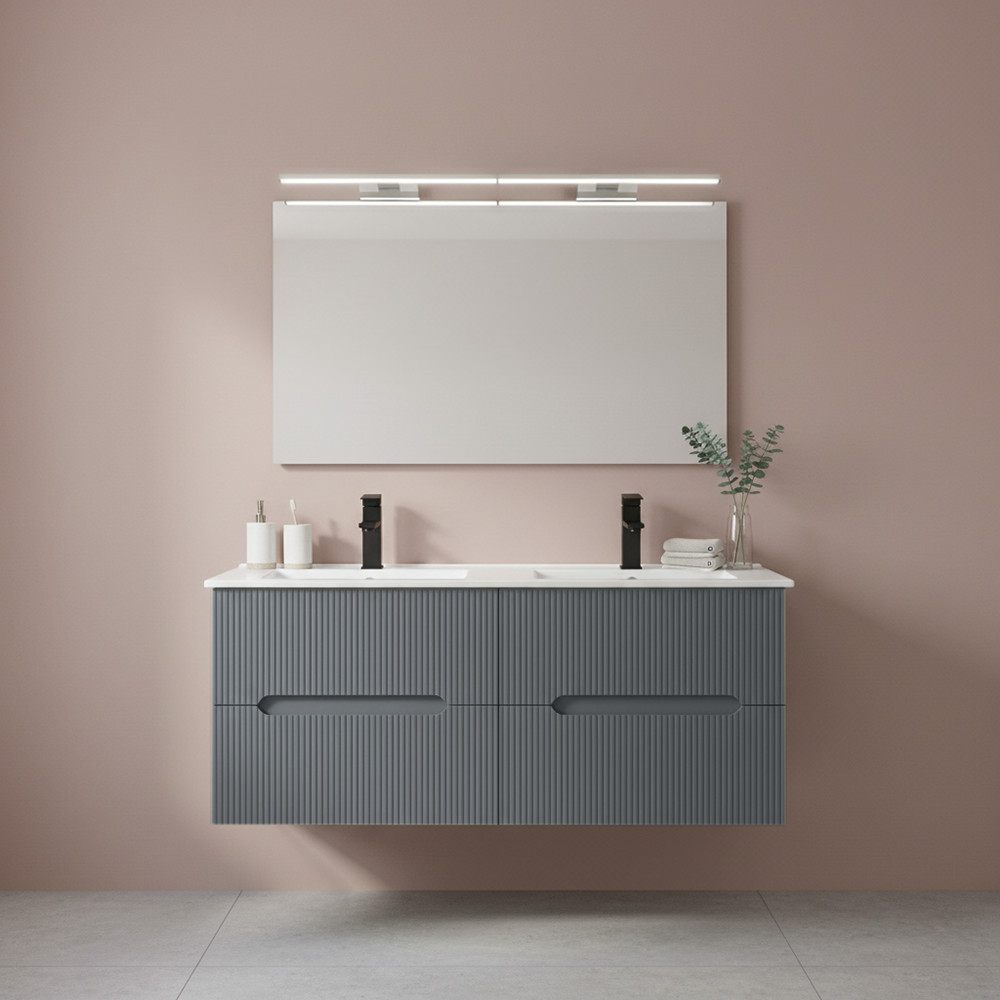 Mobilierul de baie Leziter Trent combină armonios estetica și caracterul practic. Panoul frontal canelat îi conferă un caracter curat și modern, în timp ce mânerul integrat îl face comod de utilizat. Fixarea pe perete creează un aspect fără efort și face curățarea podelei mai rapidă.