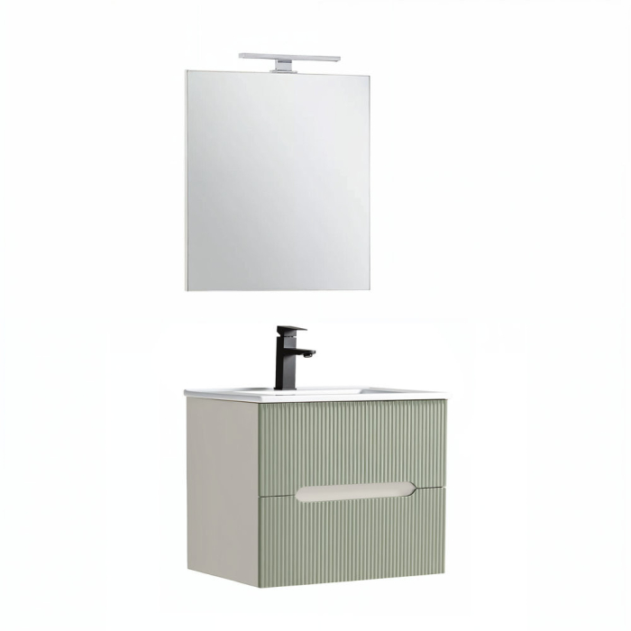 Leziter Trent Mobilier baie 60 cm lavoar ceramic (2 sertare) cu oglindă Alb - Verde