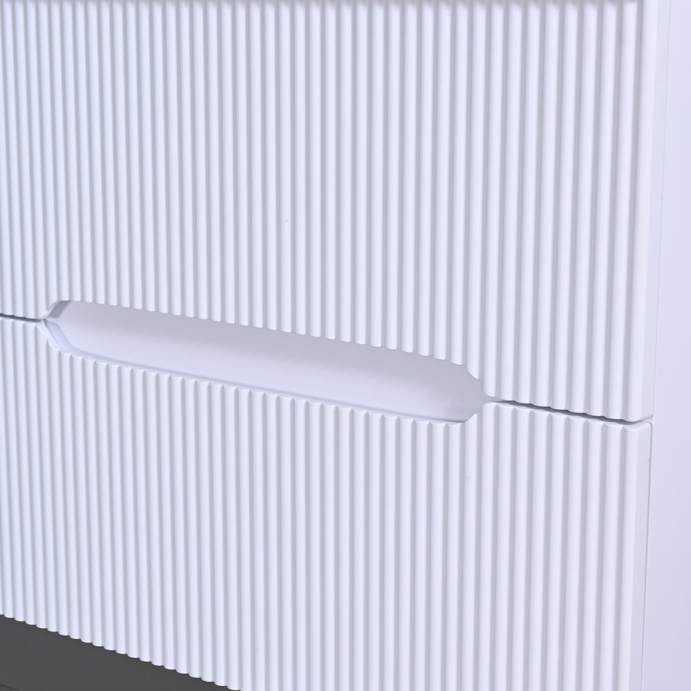 Mobilierul de baie Leziter Trent combină armonios estetica și caracterul practic. Panoul frontal canelat îi conferă un caracter curat și modern, în timp ce mânerul integrat îl face comod de utilizat. Fixarea pe perete creează un aspect fără efort și face curățarea podelei mai rapidă.
