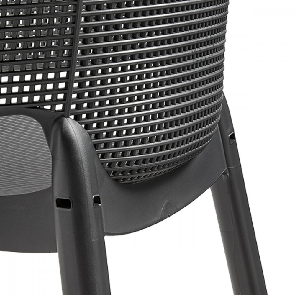 Eva este un scaun excepțional de confortabil, cu un aspect modern. Spătarul și șezutul profilate, precum și linia moale și rotunjită a cotierelor sunt, fără îndoială, avantaje ale acestui produs. Modelul neted din răchită are o textură modernă, este ușor de curățat, iar scaunele sunt stivuibile. Mobilier ideal pentru casă și grădină.