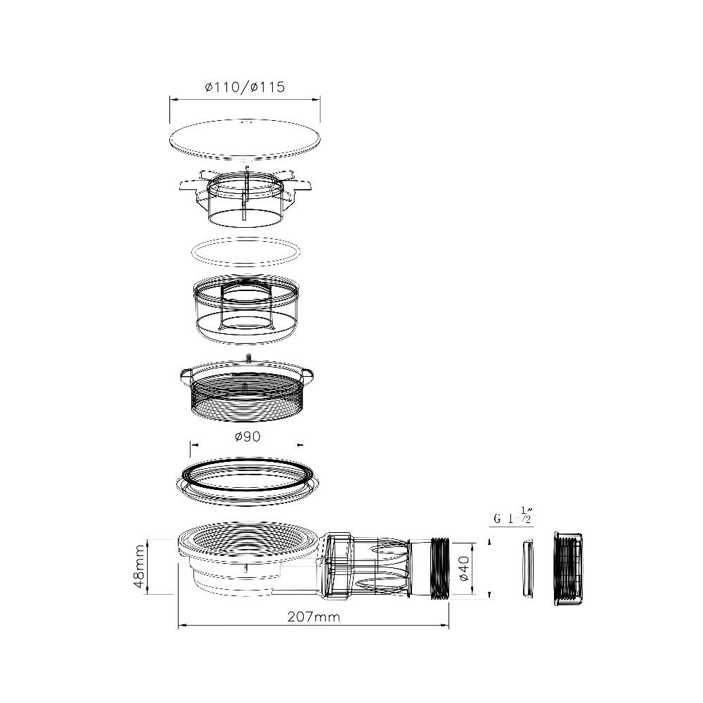 Dimensiuni (coș sifon) ⌀90 mm