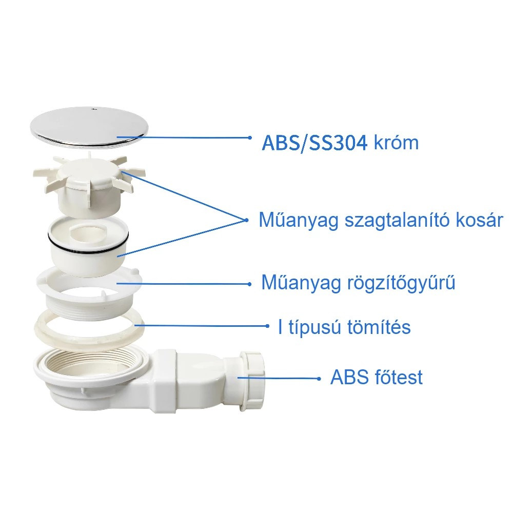 Finisajul placat cu ABS și SS304 cromat rezistă testului timpului, garantând durabilitate pe termen lung. Coșul de dezodorizare din plastic asigură că în scurgere nu rămân reziduuri alimentare sau alte murdării, care ar putea să o înfunde sau să provoace mirosuri neplăcute.