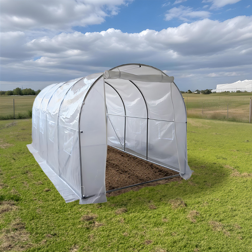 Cortul modern din folie este echipat cu o ușă pliabilă practică, care facilitează accesul. Cele 8 orificii de ventilație laterale ale cortului sunt prevăzute cu plasă pentru a preveni pătrunderea insectelor, asigurând în același timp o circulație adecvată a aerului. Ferestrele ajută la reglarea umidității, crescând astfel randamentul culturilor. Cortul din folie poate fi utilizat în orice condiții meteorologice, fiind o soluție ideală pentru cultivarea plantelor în grădină sau pe proprietate.