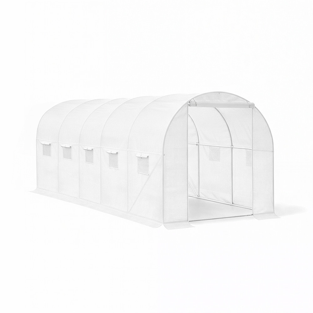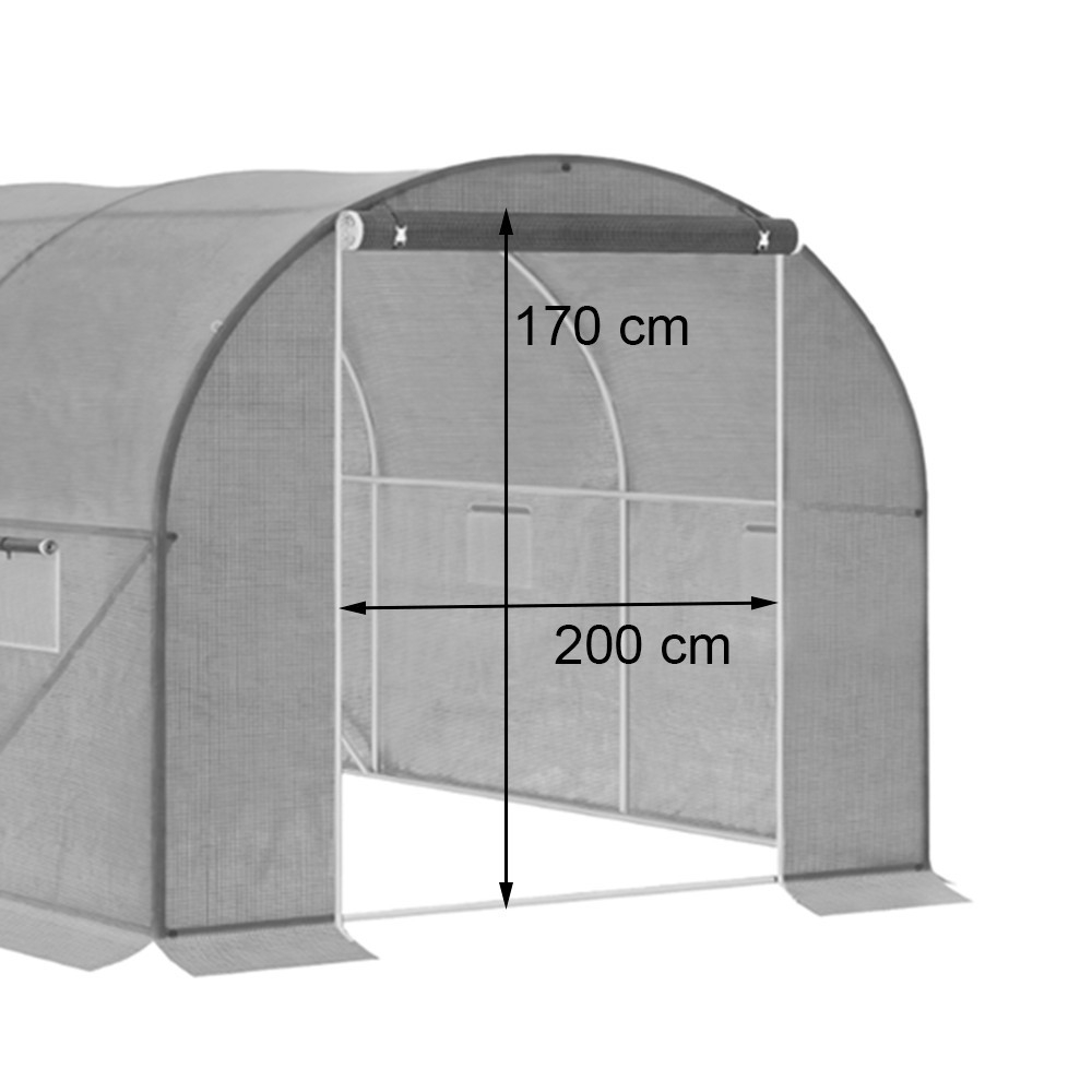 Cortul modern din folie este echipat cu o ușă pliabilă practică, care facilitează accesul. Cele 8 orificii de ventilație laterale ale cortului sunt prevăzute cu plasă pentru a preveni pătrunderea insectelor, asigurând în același timp o circulație adecvată a aerului. Ferestrele ajută la reglarea umidității, crescând astfel randamentul culturilor. Cortul din folie poate fi utilizat în orice condiții meteorologice, fiind o soluție ideală pentru cultivarea plantelor în grădină sau pe proprietate.
