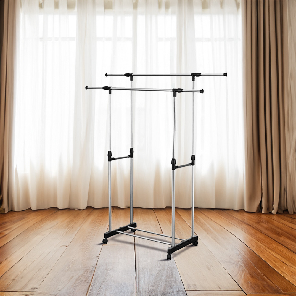 • Utilizare flexibilă: Datorită înălțimii reglabile și celor două niveluri, suportul de haine poate fi adaptat la diferite mărimi de haine și accesorii, fie că este vorba de paltoane lungi, bluze sau chiar pantofi.
