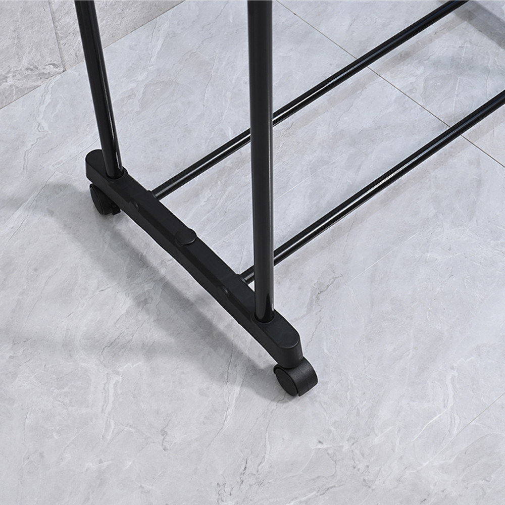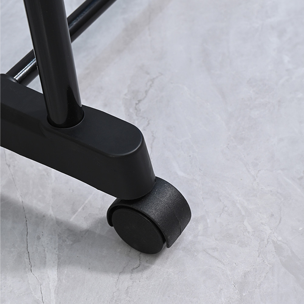 • Mobilitate: Suportul este dotat cu roți, astfel încât poate fi mutat cu ușurință dintr-un loc în altul, ideal pentru dormitoare, dulapuri sau camere de oaspeți.