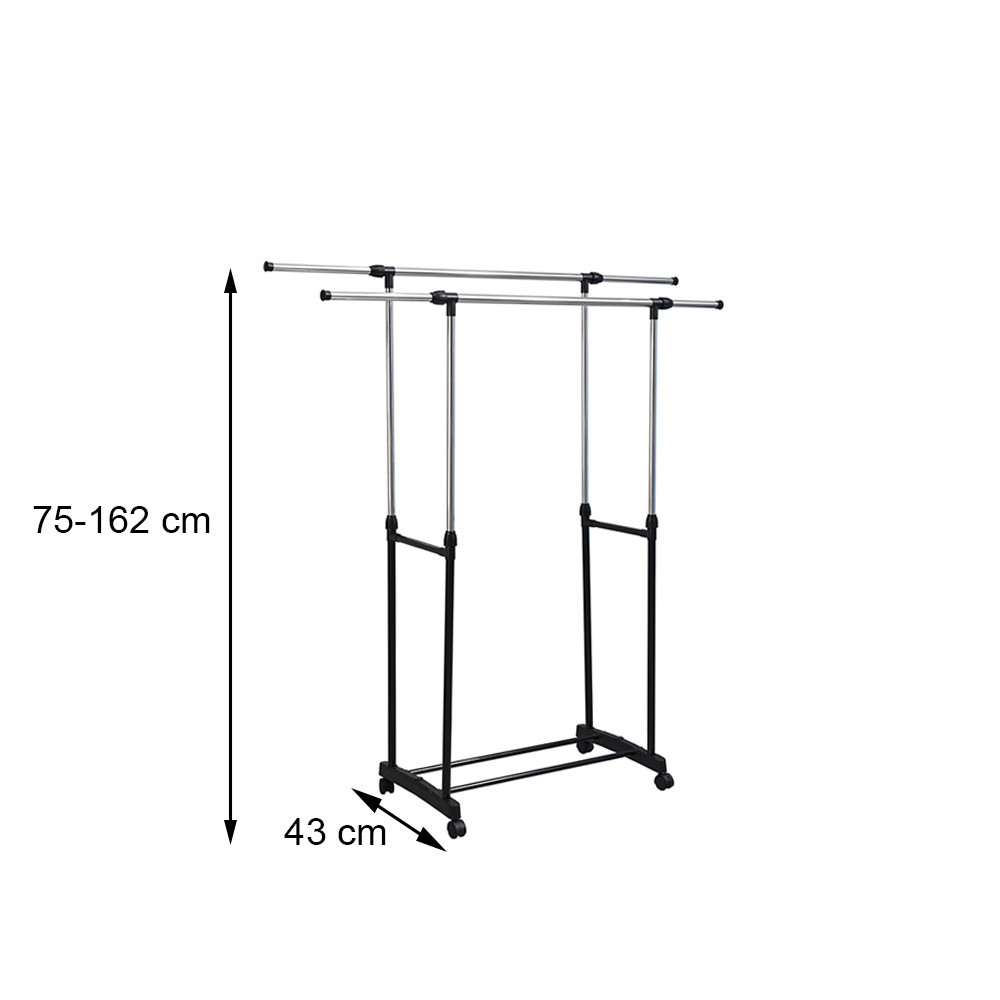 • Înălțime reglabilă: Înălțimea suportului poate fi reglată între 75 cm și 162 cm, fiind potrivit pentru depozitarea hainelor de diferite mărimi, fie că este vorba de paltoane lungi sau bluze scurte.