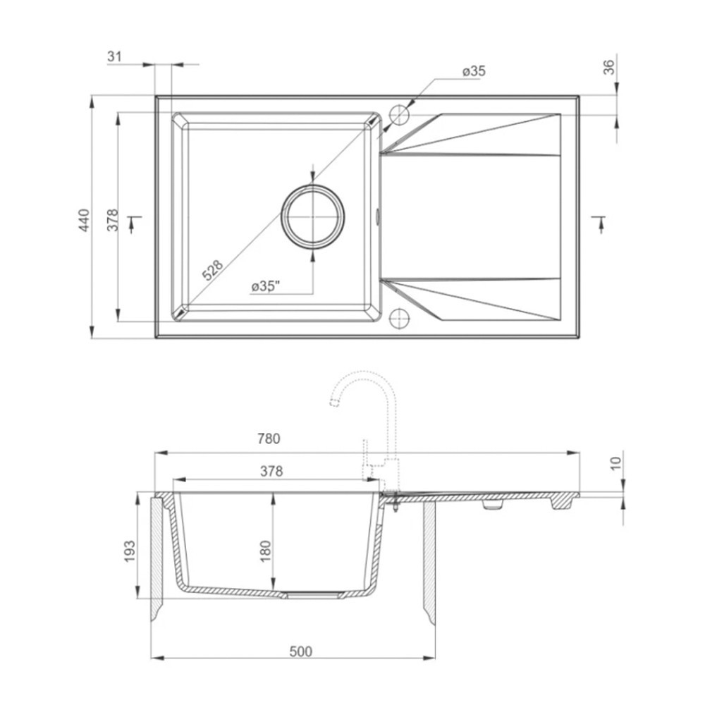 Chiuveta pătrată din granit Gori cu o singură cuvă, de culoare bej, îndeplinește atât cerințele de calitate, cât și cele de stil din bucătăria dumneavoastră. Materialul compozit granit este o combinație perfectă de nisip cuarțos și rășini, care oferă o rezistență excelentă la impact, rezistență la căldură (până la 250°C), decolorare și șocuri termice, conform standardului european EN 13310.