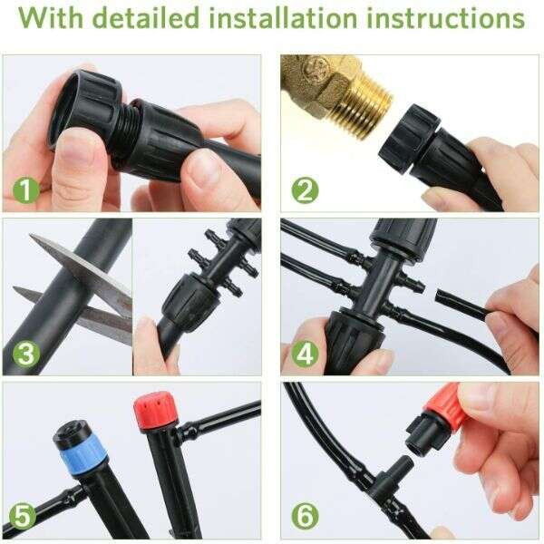 Laster- Set mare pentru irigare. Sistemul de irigare de precizie livrează cantitatea potrivită de apă, ajungând încet și precis la rădăcinile plantelor. Economisiți până la 70% apă comparativ cu udarea manuală, udând mai multe plante cu mai puțină apă... Sistemul de irigare de precizie livrează cantitatea corectă de apă și economisește până la 70% apă. Evitați udarea excesivă. Acum vă puteți bucura de umbră în timp ce plantele dvs. sunt udate automat, economisind timp, bani și apă... Are grijă de plantele dvs. de exterior în zilele însorite. Sistem de udare care are grijă de plantele dvs. în zilele însorite fierbinți. Acum vă puteți bucura de umbră în timp ce plantele dvs. sunt udate... Instalare ușoară fără săpături. Instalare ușoară fără săpături sau cunoștințe de instalații sanitare. Pur și simplu introduceți fitingurile și picurătoarele, iar în câteva minute puteți începe să vă udați plantele... Aveți cu ușurință o grădină luxuriantă. Chiar și în cele mai fierbinți și uscate zile de vară, grădina dvs. va înflori și gazonul dvs. va fi un covor verde luxuriant. Sistemul oferă plantelor suficientă apă pentru o creștere sănătoasă... Răspunde nevoilor fiecărei plante în parte. Picurătoarele reglabile vă permit să ajustați debitul de apă pentru fiecare plantă, copac sau zonă de gazon în parte. Udați toate plantele deodată și aveți grijă de nevoile lor de apă... Descriere: Set mare pentru udare... Material. Lungime furtun: 20 m. Ambalaj: 2x furtun, 1x furtun transparent cu 4 vârfuri, 15x conector în T, 20x duză verde, 1x panglică, 10x dop roșu cu opt găuri, 5x dop albastru cu arc la sol, 20x element de fixare, 20x conector pentru furtun, 10x conector mic, 10x dop cu două vârfuri, 3x reductor hexagonal, 1x balama, 1x balama universală, 1x conector pentru robinet.