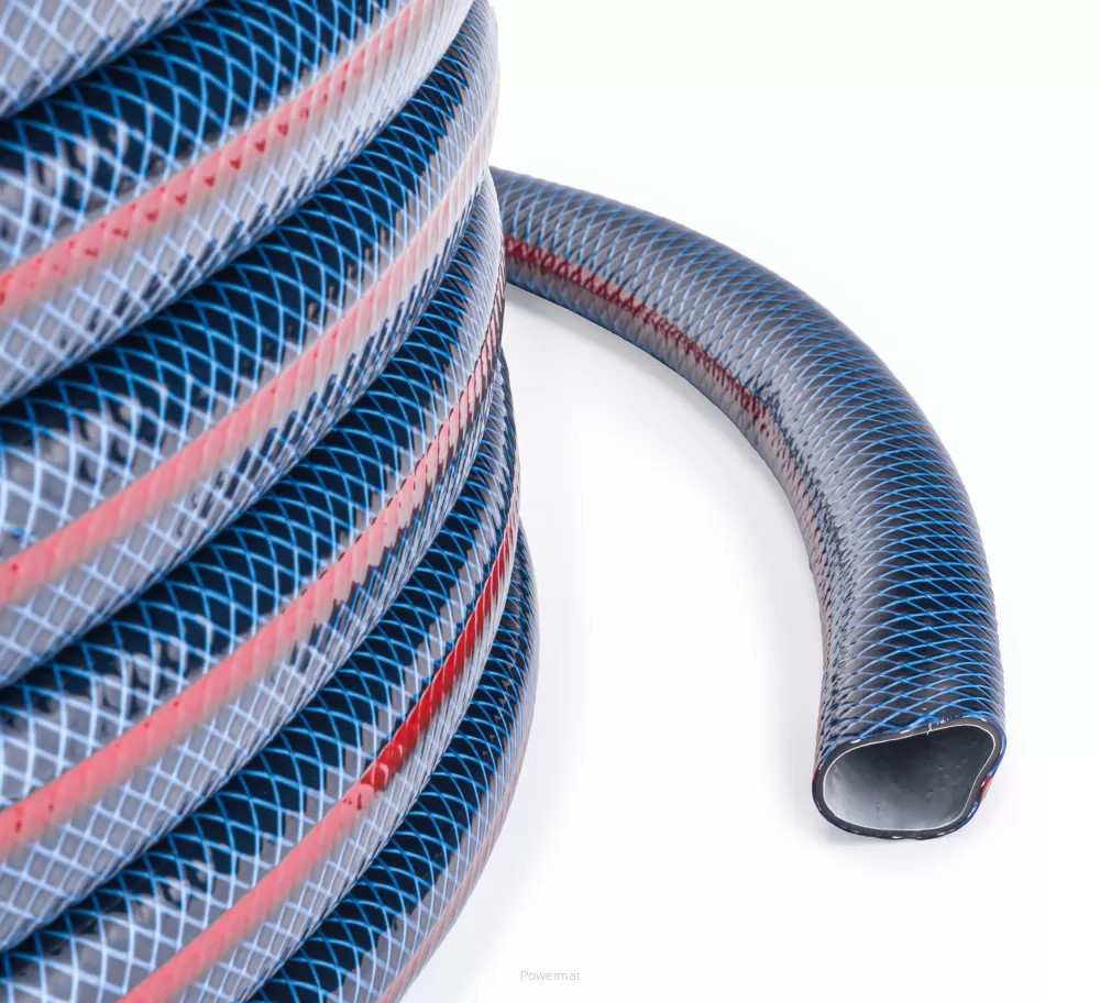 Furtunul este fabricat dintr-un material exterior PVC anti-UV de foarte înaltă calitate, împletitură încrucișată din fibră sintetică, strat exterior flexibil din PVC și strat interior alb co-extrudat.