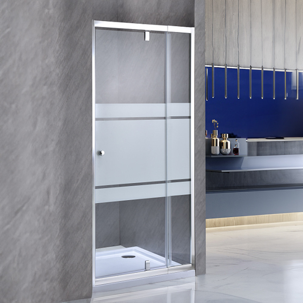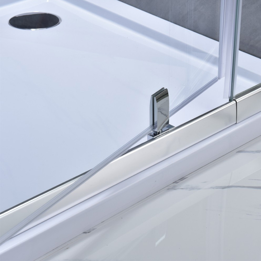 Ușă de duș auto-instalabilă, cu lățimea reglabilă între 96-111 cm, sticlă securizată transparentă de 6 mm, profile din aluminiu cromat și mâner.