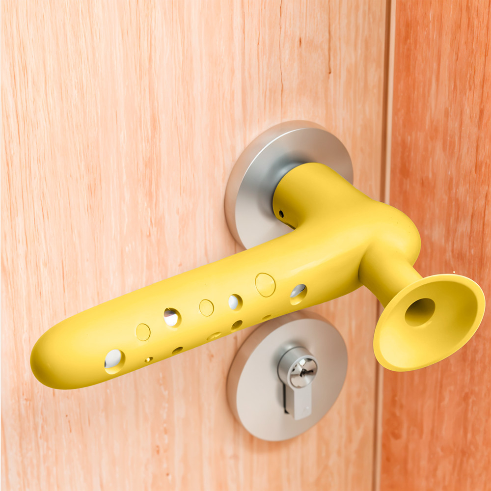 Datorită dimensiunii universale, capacul poate fi instalat cu ușurință pe majoritatea mânerelor de uși în formă de L, fără unelte. Datorită materialului siliconic, husa este flexibilă, dar durabilă, oferind protecție pe termen lung. Oferă siguranță nu doar clanței ușii, ci și peretelui.