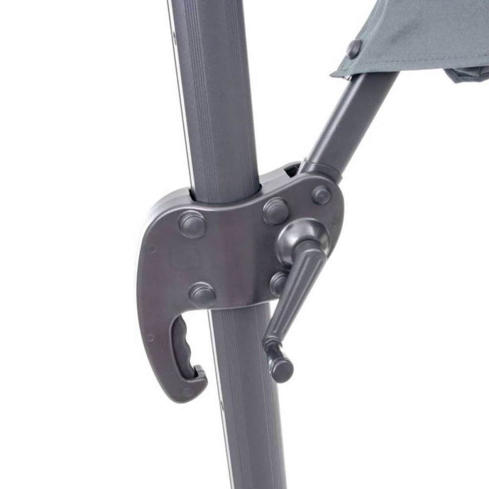 Pentru confortul dumneavoastră, este atașat un mâner pentru a plia și a desfășura o umbrelă de grădină mare. Avantajul unei umbrele de terasă este combinația dintre un mecanism de rotațieîn bază și reglarea unghiului de înclinare.Acest lucru permite poziționarea copertinei după cum se dorește și selectareapozițiilor de umbrire în funcție de unghiul de incidență a luminii solare.