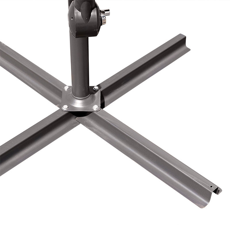 Stabilitatea umbrelei de grădină este influențată în mare măsură de bara transversală. Pentru a desfășura și plia umbrela mare de grădină este prevăzut un braț practic de rulare. Brațul de pe brațul umbrelei vă permite să poziționați umbrela în orice poziție și să alegeți poziția de umbră în funcție de unghiul de incidență a razelor soarelui.